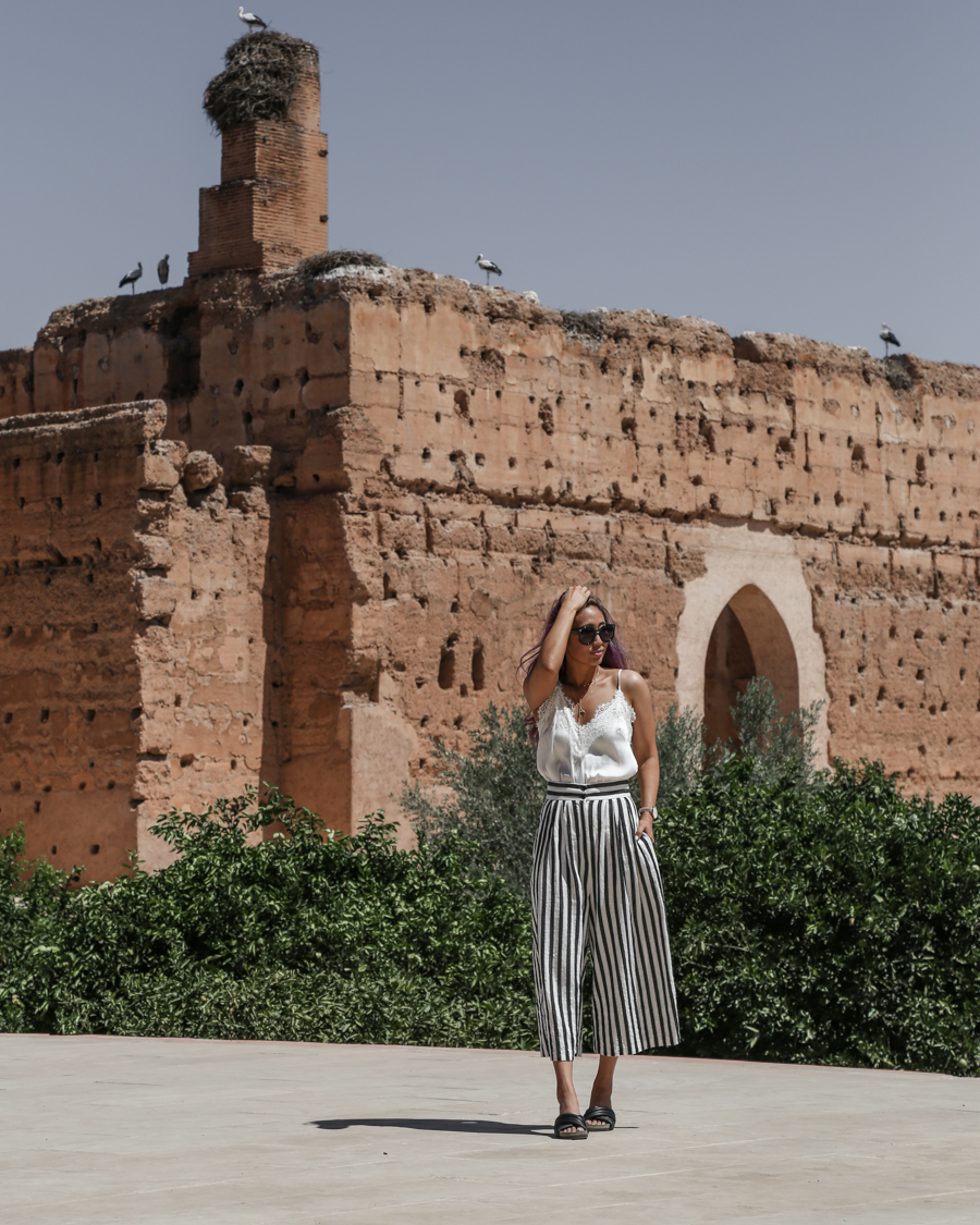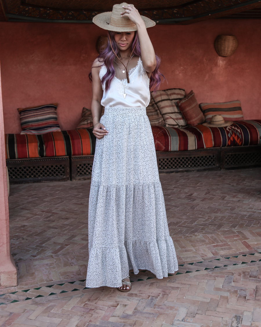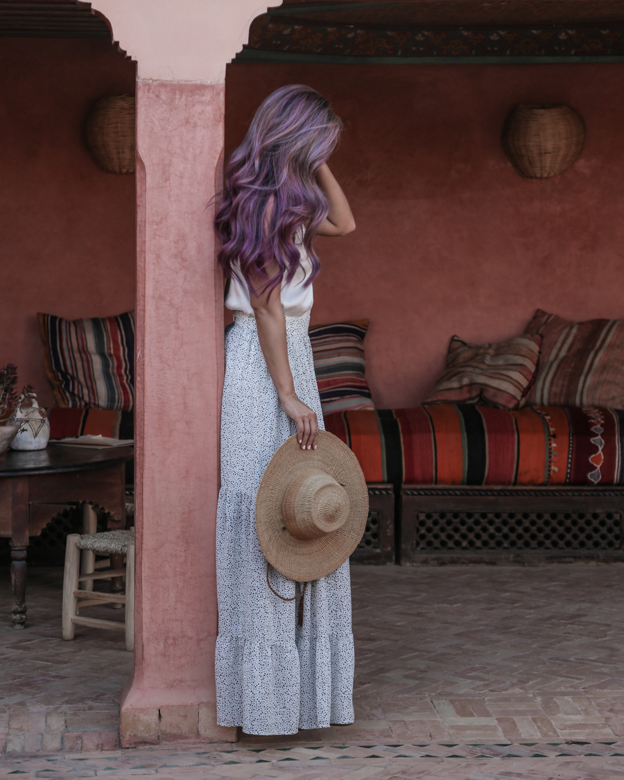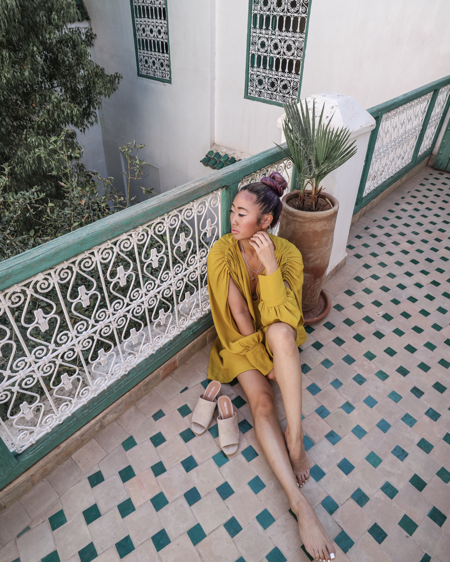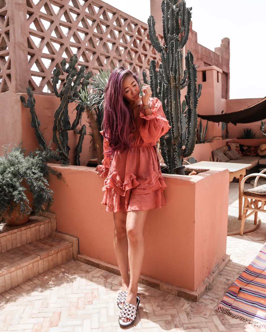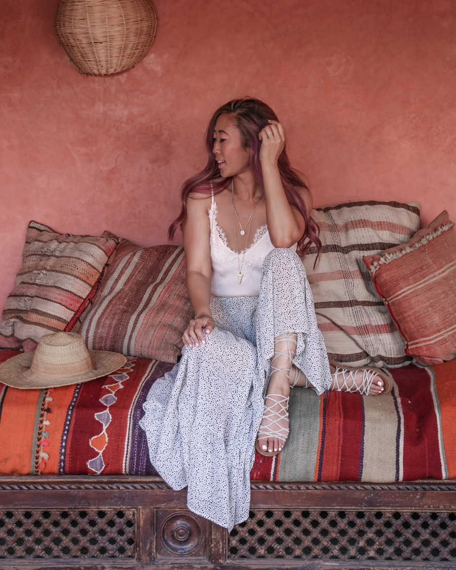 When packing for Marrakech, I packed beautiful summery clothing full of dresses and rompers and COLOR. Marrakech is full of character and color and I wanted to match that. But it’s a smart idea to pack your neutrals and basics in case you need to mix things up, and that’s exactly what I did. Since the weather was scorching hot, the pieces had to be breathable. For strolls around the souks, I kept it casual and mainly wore basics like denim shorts and simple tops. I didn’t want to look too flashy. The flashy stuff served so much better in the beautiful riads anyways.