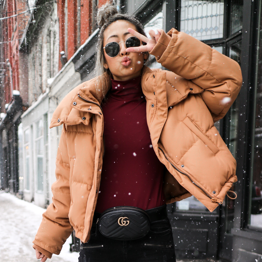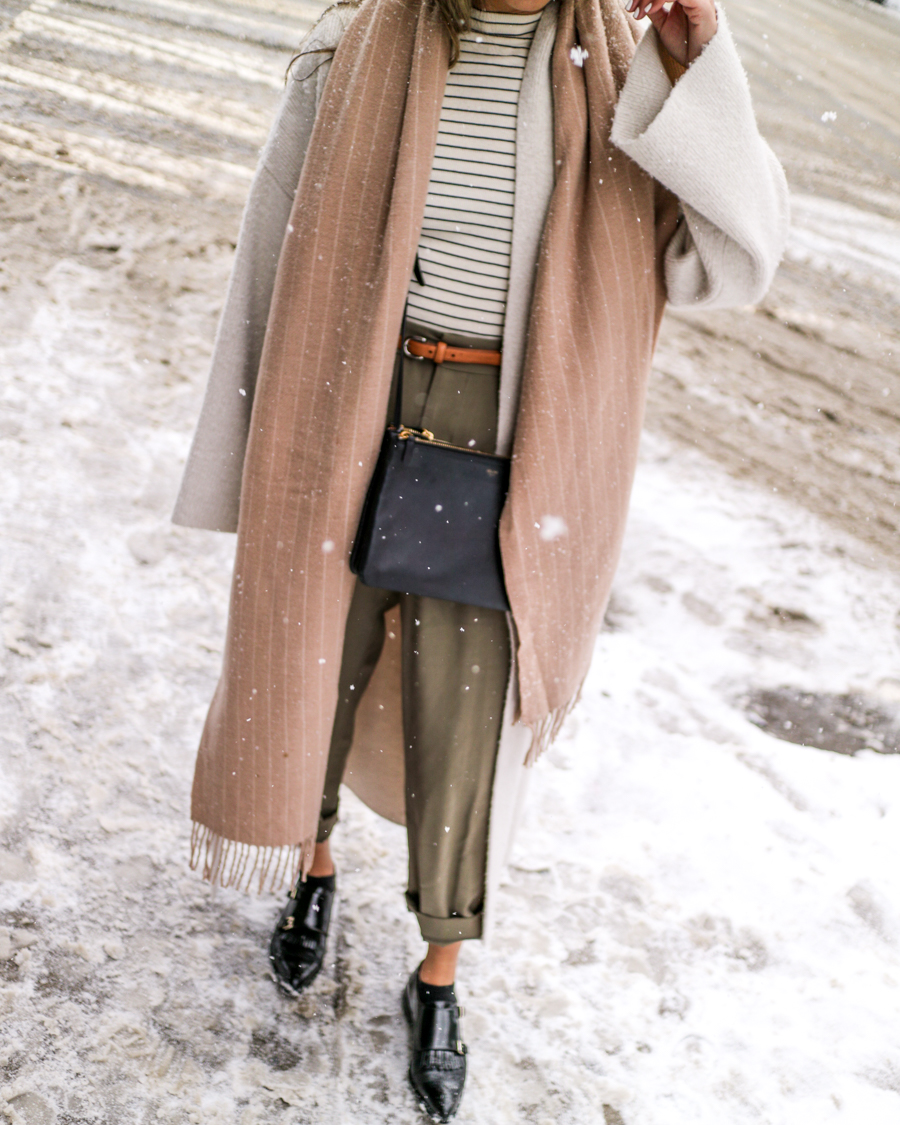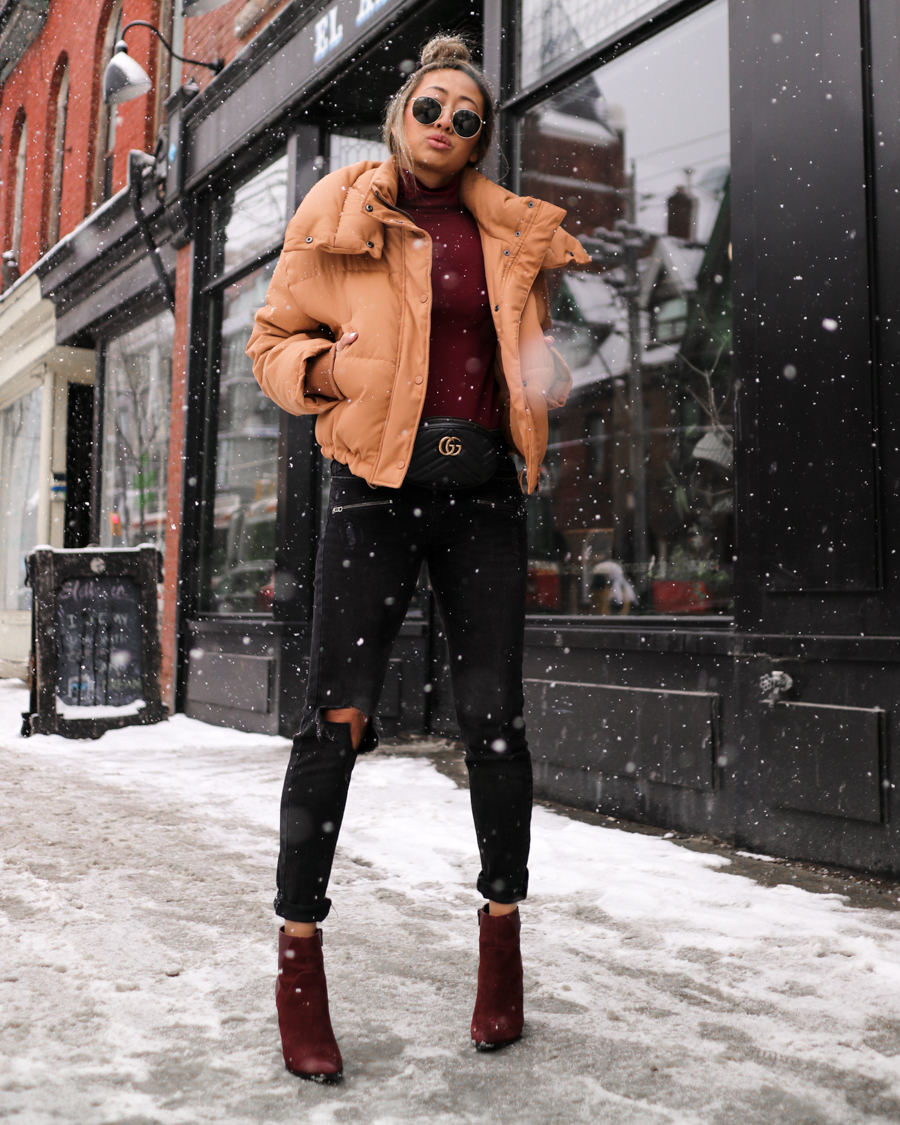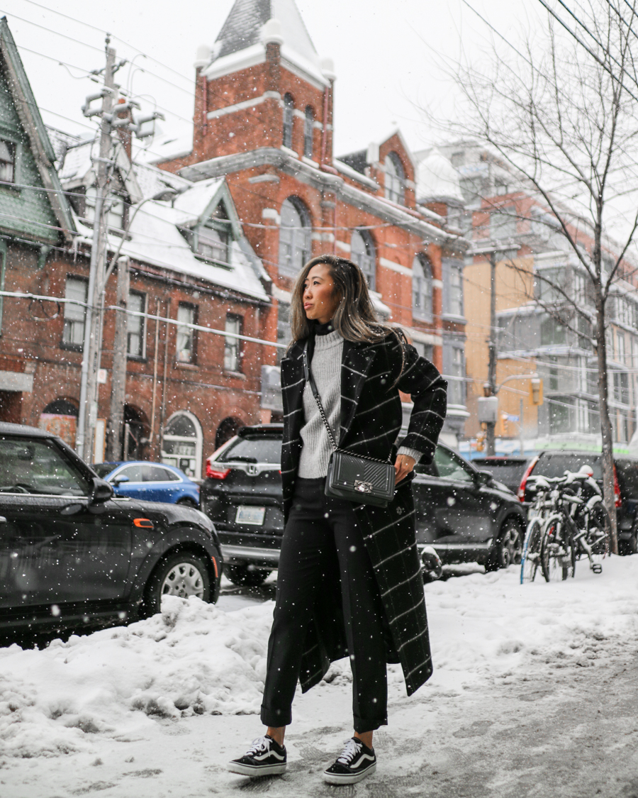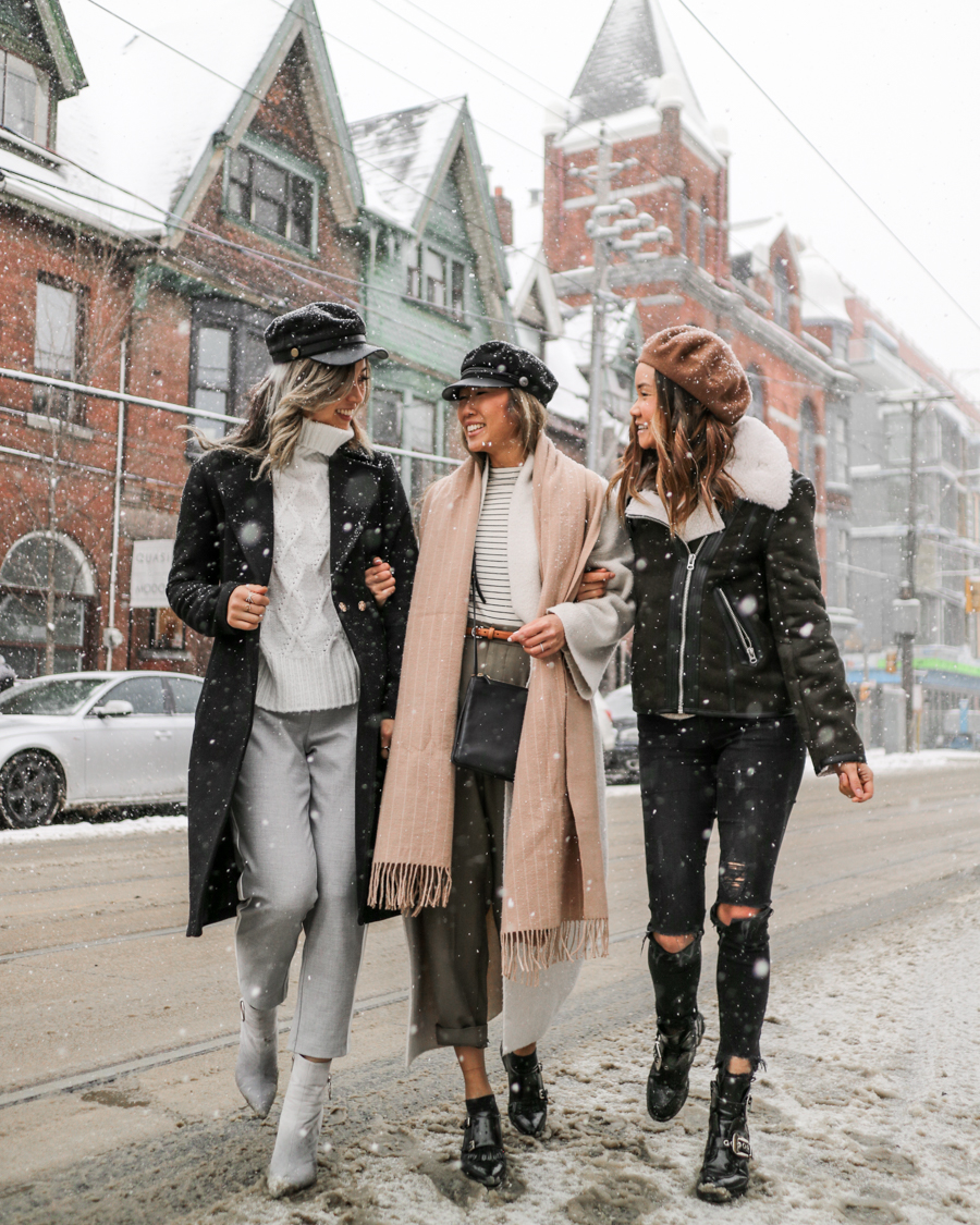I was super lucky to be in a winter wonderland downtown while we shot these outfits! But to be honest, it wasn’t very smart winter dressing. I’m the type of girl to show her ankles and bare legs all seasons. So don’t take this as cold weather outfit inspo. Or you can, just add in some socks or stockings haha.