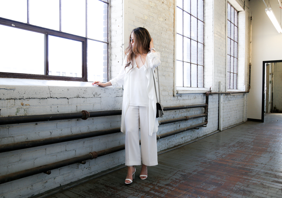 I wore this outfit for an upcoming project that you will see on my Instagram soon. Loving the flow of this minimal white duster coat. My whole outfit screams breezy. I almost feel like I want to shoot this on the beach so I can get some wind in my hair. 😉